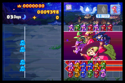 見習いマジョを並べ変え、同じ色をそろえて魔法を撃ち、
